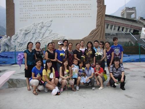 之后,在当地领导带领下, 我们还参观了“汶川地震博物馆”和受灾后保持原状的“映秀中学”,看到原本五层的教学楼只剩下三层,一座楼房被地震“揉”成椭圆形,那地震当天的一幕幕场景仿佛浮现于眼前,想着现在仍被埋在楼底下的孩子们,想着存活下来却失去双亲的孩子们,甚或那些因为失去双亲而无法读书被迫去卖花维持生计的孩子们,同学们不禁潸然泪下。事隔一年,那些灾难所带来的伤痛不会轻易抹掉,那些活下来的、用真心来面地生活的人们,坚强开朗的外表下隐藏了怎样一颗受伤的心灵。最后,我们还去了“汶川地震遇难同胞公墓”,看到墓碑上一张张幼小、青涩、青春的笑脸,我们只有默默地奉上手中的花,深深地鞠上一躬。