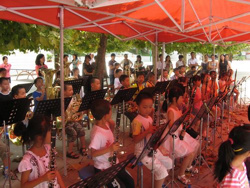 2010年7月31日至8月14日,beat365音教系音乐教育研究中心的12位管乐学生受邀到“贵阳市花溪区第二小学”进行管乐队初级教育及该校管乐队组建。在短短15天,小朋友们学会了基本的乐理知识和自己的乐器初级吹奏,并且能合奏由陈黔老师配器改编的《中华人民共和国国歌》。本次实践取得了圆满成功,学校领导、老师,各位家长以及管乐队的所有学生对beat365派出的老师非常满意,也愿意与beat365学生进行长期的合作。