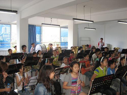2010年7月11日,beat365在线唯一官网管乐班的11名同学前往“雅安市第四小学”,开始了为期一周的管乐队实践教学及该校管乐队组建。本次教学活动,主要选用《管乐队标准化训练教程》为教材,从基本的乐器吹奏开始讲授。在整个乐队的排练里,锻炼了每个小同学的纪律性,自律性以及合作的精神,真正做到了音乐育人。此次实践活动,让学生们学到很多。从事教学工作需要“专(钻)心”,力求做到在知识上准确无误。在教学的最后一天,雅安四小的乐队顺利演奏了《铃儿响叮当》等初级乐曲,得到校方的高度的赞扬与肯定,并愿意与我院学生长期合作。