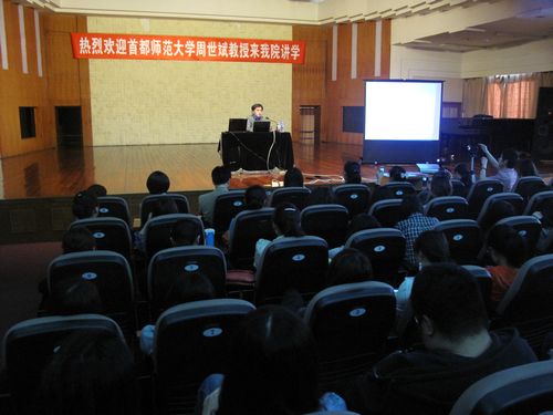 4月19日下午,首都师范大学音乐学院副院长、音乐教育学及音乐心理学博士导师周世斌教授,在我院小音乐厅为音教系全体师生进行了题为《国际对接---中美音乐教育现状的一些观察与思考》的学术讲座。 在讲座中,周世斌教授从“音乐教育价值观”、“音乐教育能力观”、“基础教育音乐课程改革与高师音乐教育人才培养模式改革实验构想”、“音乐教育软实力--特色与质量”四个方面进行了讲演及论述。在谈到“基础教育音乐课程改革与高师音乐教育人才培养模式改革实验”这一论题时,周教授对国际国内的学术、教育现状进行了详尽的分析,并提出了国内音乐教育的改革方向和需要解决的问题,启迪大家共同思考。通过这次讲座,全系师生进一步了解了国际国内音乐教育的发展现状,吸取了更多的信息,拓展了思路,开阔了视野。