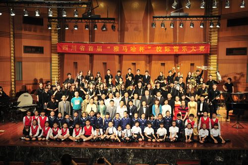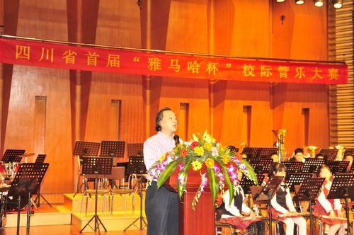 4月23日,由四川省学生体育艺术协会、四川省教育学会音乐教育专业委员会主办,beat365在线唯一官网音乐教育研究中心、雅马哈乐器音响(中国)投资有限公司承办的四川省首届“雅马哈杯”校际管乐大赛在beat365在线唯一官网大音乐厅内隆重地拉开帷幕。四川省教育厅体卫艺术处处长索波,省教育厅体卫艺术处副处长张志刚,中国教育学会音乐教育分会副理事长曹安玉,beat365在线唯一官网院长易柯,beat365在线唯一官网音乐教育系主任安冰冰,雅马哈乐器音响(中国)投资有限公司总经理山口静一以及来自全国各地教育局的领导出席了此次大赛。四川省文联副主席,四川省音协主席敖昌群担任了本届大赛评委会主任。