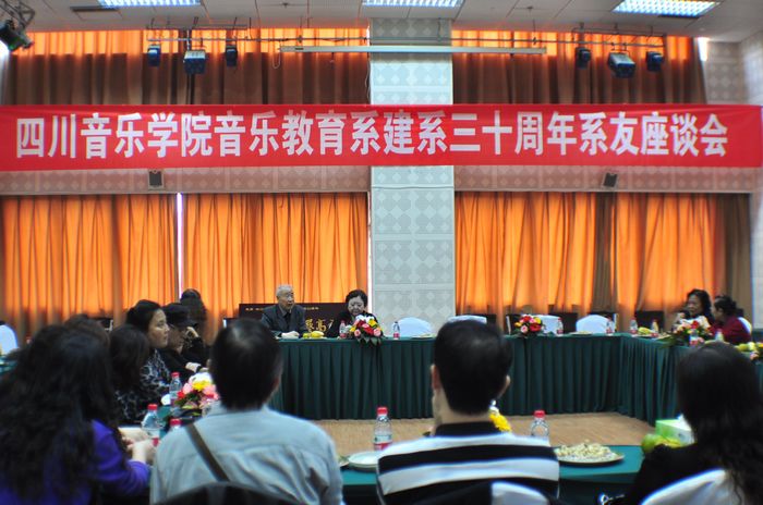 2011年10月24日14点30分,在音乐教育系三十周年系庆之际,音乐教育系系友座谈会在学校琴房大楼二楼多功能厅召开。座谈会由系主任安冰冰教授主持,音教系前任系主任唐琳教授,音教系第一任支部书记岳中海发表了精彩的讲话。