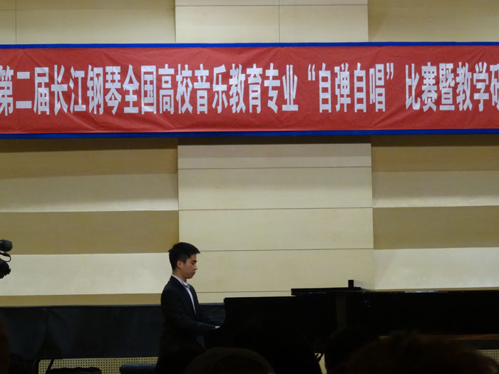 2013年11月29—12月1日,由天津音乐学院主办的“第二届“长江钢琴”全国高校音乐教育专业“自弹自唱”比赛暨全国高校音乐教育专业“自弹自唱”课程教学研讨会在天津音乐学院举办。我院院长安冰冰教授受邀担任了本次比赛评委工作,理论教研室主任李勇副教授带队,携同本院奉建、李颖、戚頔三位老师及3名选手参加了本次比赛和研讨会。