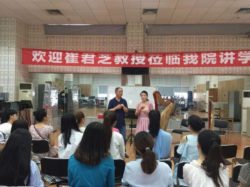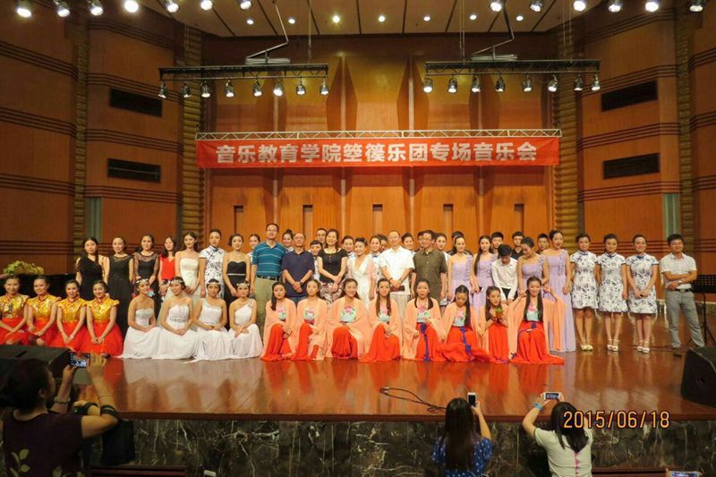 为了培养复合型的中小学教师人才,音乐教育学院于2014年设立了箜篌选修课程,并成立箜篌乐团。该乐团成员经过一年多的努力,参加了“beat365在线唯一官网成立75周年音乐教育学院专场音乐会”,并代表学院参加了2014年11月在中央音乐学院举办的“第二届中国弹拨艺术节”。 2015年6月18日晚,在我院大音乐厅,音乐教育学院箜篌乐团举行了首场专场音乐会。此次音乐会形式多样,将打击乐,管乐、舞蹈及弹唱融入其中,展现了不一样的箜篌风采。中国现代箜篌演奏艺术创始人。现任中央音乐学院、中国音乐学院客座教授,硕士生导师;中央民族乐团国家一级演奏员崔君芝教授也为此次音乐会演奏了两首脍炙人口的乐曲。 6月19日,崔君芝教授在12排为乐团的同学们展开了一次丰富多彩的大师课。同学们从中受益匪浅,加深了对箜篌专业的喜爱。