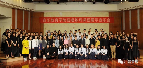 由音乐教育学院理论教研室主办的视唱练耳课程展示音乐会于2019年5月8日成功举办。 本次音乐会近300名音教学院师生参加,主要由理论教研室教师指导排练。 音乐会以合唱的形式展示了音乐教育学院基础课程—视唱练耳课的教学成果。视唱练耳课程以合唱来展示是目前国际国内前沿的展示形式,视唱练耳课程中“练耳”是旨在培养学生的音乐听觉,包括听写与听唱,“视唱”是通过对乐谱符号准确生动的歌唱再现,尤其“读谱视唱”既是建立和积累音乐语言的最基本方式,又是整体音乐表现能力的最直接呈现,视唱练耳课程集中体现了对学生音准的训练、和声听觉的训练、音乐记忆的训练、对乐谱准确生动再现的训练,合唱的表现形式恰好最大程度的呈现了视唱练耳课程的训练成效。 音乐会视频链接: https://v.qq.com/x/page/c0870ejgys9.html
