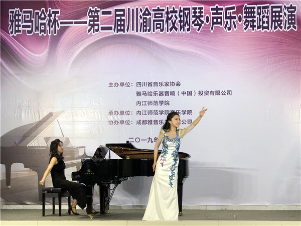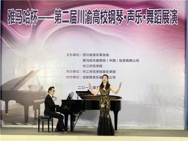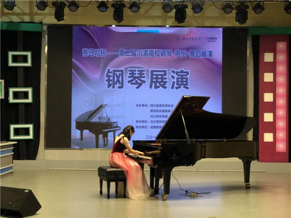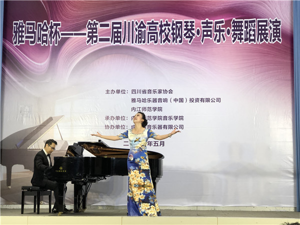 为促进川渝高校声乐、钢琴、舞蹈三大学科的教学及舞台实践交流,增进川渝高校音乐、舞蹈学科专业间的协同发展,由省音协、雅马哈中国公司和内江师院联合主办的雅马哈杯—第二届川渝高校钢琴声乐舞蹈展演活动于2019年5月19-23日在内江师范学院隆重举行。川渝两地共二十余所高校组队参赛。 经过短暂的统筹、准备工作,在学校领导的关心、支持下,我院16名师生组成的参赛队在表演专业和海归学者云集的展演活动中,通过师生团队的协作努力和正常发挥,获得以下较好成绩: 韩悦(师) 美声银奖 马静(师) 民族铜奖 曹艺露(生) 美声银奖 王渝灵(生) 民族优秀奖 唐晨曦(生) 钢琴银奖 秦怡璇(生) 钢琴银奖 丁思瑜(生) 舞蹈铜奖 及各相应的优秀指导教师奖