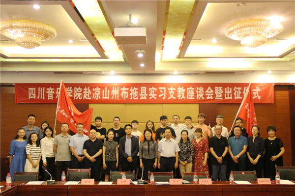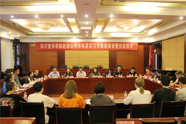 党委副书记侯钫、党委常委副院长文锋、党委常委宣传(统战)部部长雍敦全,以及党委办公室、组织部、计划财务处、教务处、人事处、学工部、校团委、音乐教育学院等相关部门负责同志、下派布拖县干部、实习支教同学共计30人参会。