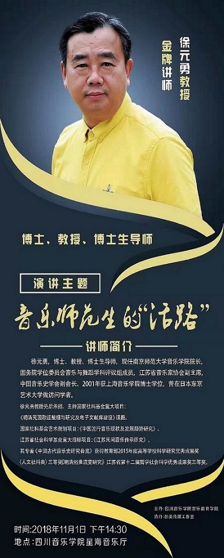 徐元勇,博士、教授、博士生导师,现任南京师范大学音乐学院院长,国务院学位委员会音乐与舞蹈学科评议组成员,江苏省音乐家协会副主席,中国音乐史学会副会长。2001年获上海音乐学院博士学位,曾在日本东京艺术大学做访问学者。 徐元勇教授先后承担、主持国家社科基金重大项目: 《明清民国歌谣整理与研究及电子文献库建设》课题 国家社科基金艺术规划项目:《中国流行音乐现状及发展趋势研究》 江苏省社会科学基金重大招标项目:《江苏民间音乐传承研究》 其专著《中国古代音乐史研究备览》获得教育部2015年度高等学校科学研究优秀成果奖(人文社科类)三等奖,《明清俗曲流变研究》江苏省第十二届哲学社会科学优秀成果奖三等奖 地点:beat365在线唯一官网星海音乐厅