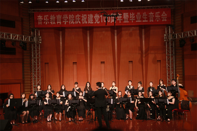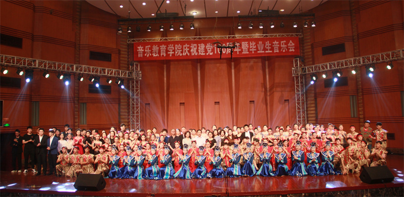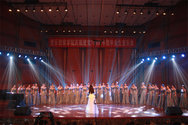 党的一百年是践行初心使命的一百年,是奠基丰功伟业的一百年,是创造辉煌、开辟未来的一百年。党的一百年是中国人民改变历史命运的一百年,是华夏民族迎来伟大复兴的一百年,是新中国为人类社会做出卓著贡献的一百年。鲜红的党旗,经历百年的洗礼,更显飒爽多娇,庄严的党徽,经历百年锤炼,更加坚如磐石。管瑟齐鸣,歌声悠扬、衣袂飘飘,我们向母校道别,我们向党汇报,2021年6月8日,音乐教育学院庆祝建党100周年暨2021届毕业生音乐会在大音乐厅成功举行。