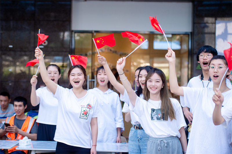 鲜艳的五星红旗、激情彭拜的歌声,还有青春靓丽的面庞,汇集成一副靓丽的青春图景、奏响了一首和谐美好的感人乐章,为夏日增添了一抹绚烂的色彩,更为中国共产党百年华诞献上一份真挚的祝福。