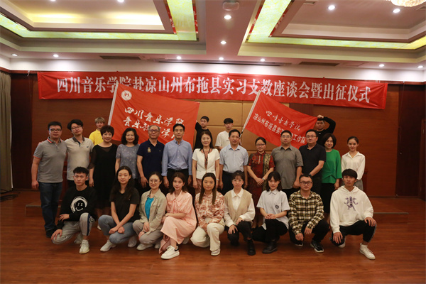 支教队带队教师音乐教育学院管乐老师郝奥和全体支教学生发言,从思想认识上谈到支教的意义,表示一定牢记领导和老师们的嘱托,尽快适应新的环境和生活,在支教过程中积极调研,努力工作,争取以最大的成绩为支教工作交出一份满意的答卷。