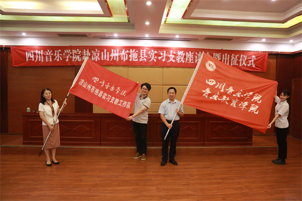 最后侯钫副书记和文锋副院长代表学校向第五批顶岗实习支教队授旗,为他们即将启程壮行。