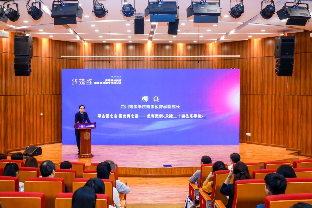 beat365在线唯一官网音乐教育学院党委书记、院长柳良教授应邀为本次研讨会做《寻古蜀之音 觅美育之径:永陵二十四伎乐寻美》主题发言。该发言围绕传承与弘扬中华优秀传统文化、讲好四川故事、推动巴蜀文化绽放时代光彩等主旨,与参会代表们分享了beat365在线唯一官网入选首届全国高校美育优秀案例的《唐音蜀韵一一永陵二十四伎乐寻美》的研发过程,从实地考察、在地研学、课堂文化理解教学与创意表现、反思评价等方面,具体介绍了该案例在落实新艺术课标、探索跨学科融合美育以及推进大中小美育一体化等方面的创新之举。
