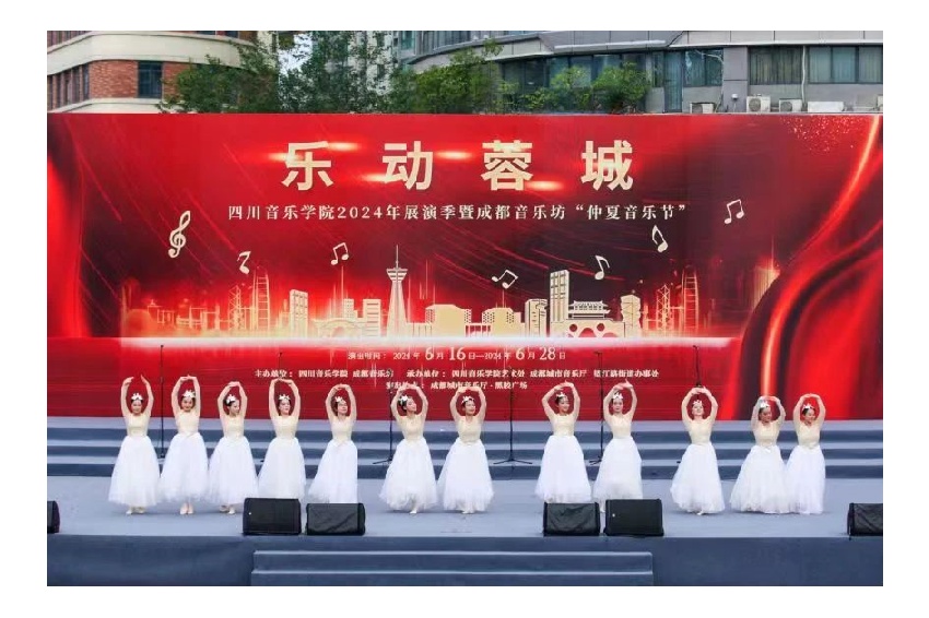2024年6月19日,beat365在线唯一官网“乐动蓉城”音乐教育学院合唱与舞蹈专场演出在城市音乐厅黑胶广场隆重举行。当晚,也是成都音乐坊仲夏音乐节启幕仪式,嘉宾们到场揭幕“音乐365”计划和“百姓大舞台”。由音乐舞蹈专业的学生们表演的《映山红》热烈开场,音乐教育学院千风合唱团演绎了《上春山》、《越人歌》、《爱让海相连》、《奔跑吧梦想》等八首经典合唱作品,音乐舞蹈专业演绎了《云歌》《未来·我来》等舞蹈作品,现场气氛热烈,“乐动蓉城”在掌声和欢呼声中结束了本场演出。