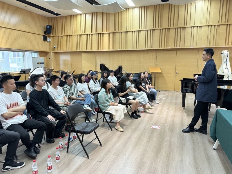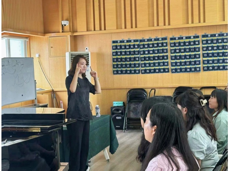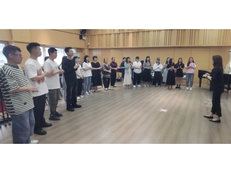 2024年5月18日,“音你而美,育见未来”乡村美育公益计划开展了第一场活动——峨边县中小学音乐教师培训。音乐教育学院党委书记、院长王志昕教授首先代表学院对到来的教师们表示热烈欢迎,随后向教师们介绍了我院凉山彝族自治州顶岗支教课堂“以学促学 以行践学”的融合教学法实践,并在了解教师们的基本情况后,为大家安排了相关课程。我院声乐教研室韩悦副教授进行了歌唱与教学专题讲座,结合经典艺术歌曲《我爱你,中国》,从赏、诵、比、思、创五个环节进行了讲授,通过分析音乐要素、感知节奏韵律、了解音乐结构以及伴奏织体到最后的创编展示,向教师们展示了课程中师生互动与生生互动的良好教学效果和艺术呈现。舞蹈教研室白渝教授向老师们介绍了非遗中的文化之美——原创儿童舞蹈《川菜魂·豆瓣乐》的美育创作,从郫县豆瓣、豆瓣制作中的美育内容和将非遗文化之美运用于儿童舞蹈展示三个方面讲解了四川传统文化与美育教育的结合实践。理论教研室青年教师聂榕以柯达伊教学理念为基础,结合声势律动和歌唱游戏,为老师们带来一堂感知节拍与变拍学习的互动音乐课展示。