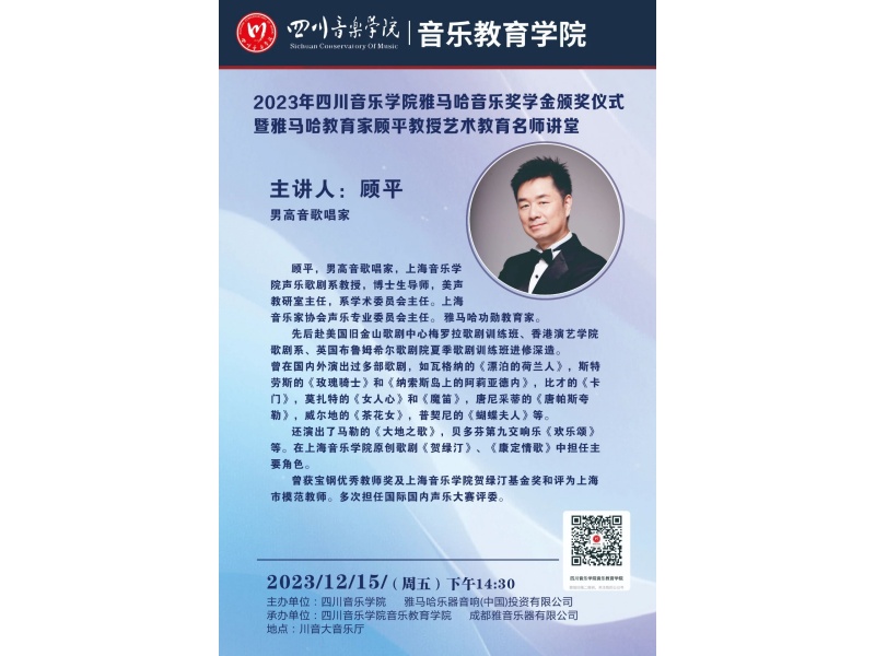 beat365在线唯一官网雅马哈音乐奖学金颁奖仪式暨雅马哈教育家顾平教授艺术教育名师讲堂