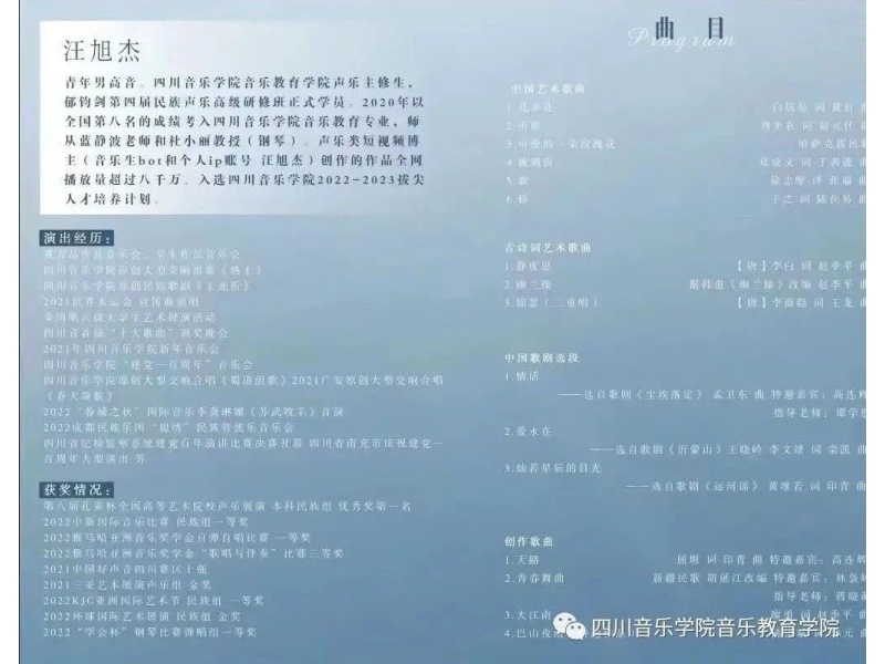 汪旭杰本科独唱音乐会“纯粹”