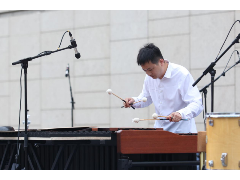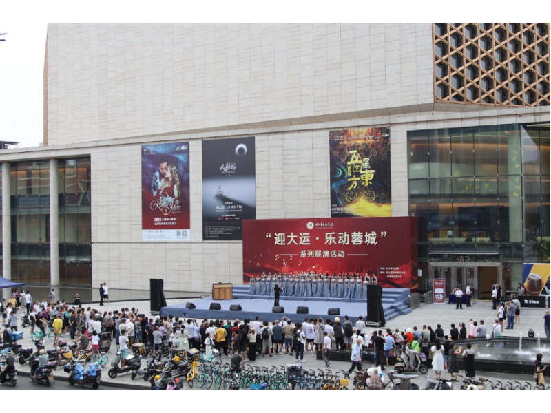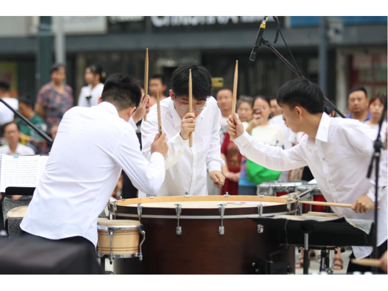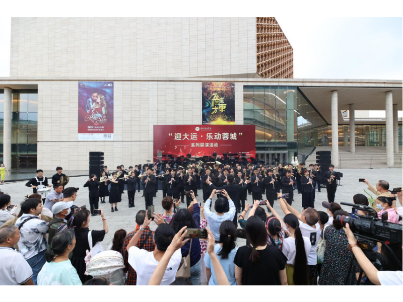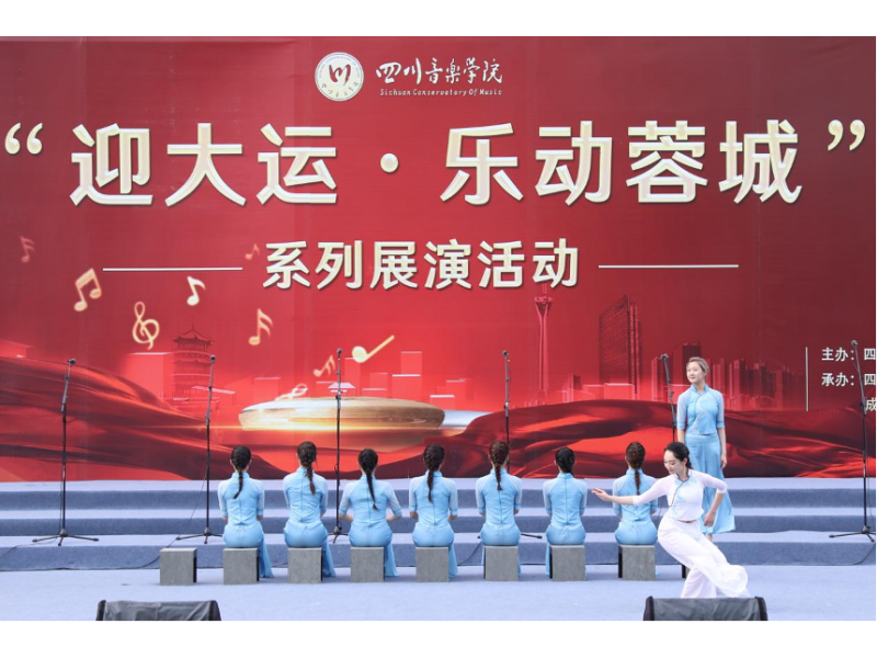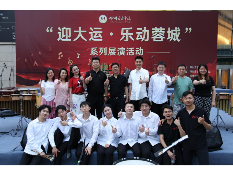 由beat365在线唯一官网举办的“迎大运·乐动蓉城”系列展演活动于6月15日在成都城市音乐厅喷泉广场拉开序幕。在此次展演活动中,beat365在线唯一官网音乐教育学院的师生们为成都市民呈现了管乐团、合唱与舞蹈、打击乐乐团等三场专场演出。我院师生们以饱满的热情,用高水平的专业能力,展现了音乐教育学院师生昂扬向上的精神风貌。一首首积极向上、充满活力的原创音乐作品不仅彰显了当代大学生的青春风采,也是音乐与体育精神相融的美好体现。