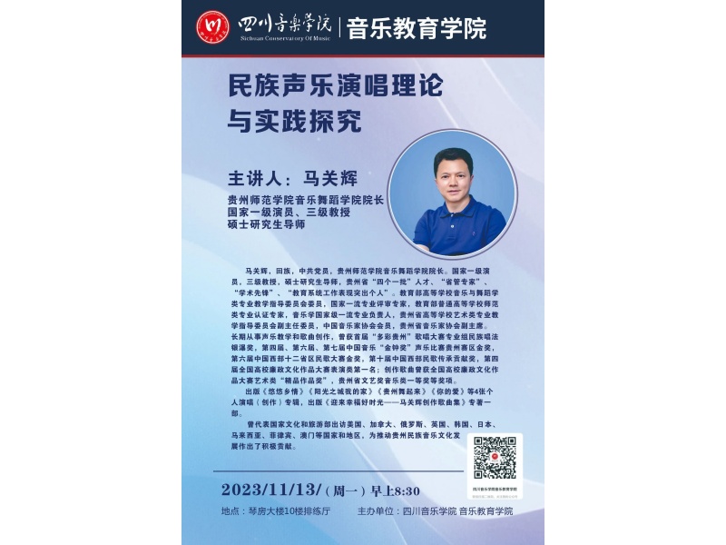 讲座主题:民族声乐演唱理论与实践探究