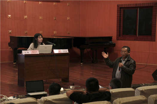 上午,第一分会场(聂耳音乐厅)的会议包括学术讲座和主题发言两个环节:第一环节,在川音前任音乐学系主任甘绍成教授的主持下,首先由中国音乐学院教授樊祖荫作题目为 《“奉五声”与“变五声”——“二变之音”在五声性七声调式中的作用》讲座。他从中国音乐最常用的五声性七声调式的概念出发,论述了传统乐学中二变之音——“奉五声”与“变五声”在传统音乐中的广泛应用,指出二变之音已成为当今中国音乐创作中既能保持五声性特点、又能得以开拓发展的重要方法;第二环节是上海音乐学院教授萧梅题目为《上音十二年:我的传统音乐教学多元化探索》的主题发言。她首先回顾了“中国传统音乐教学”的发展历程,接着从“与传统面对面、与世界对话、激活传统的当代音响、切入专题性研究”四个方面,讲述了她在上音从事“传统音乐教学多元化探索”教学十二年的经验。
