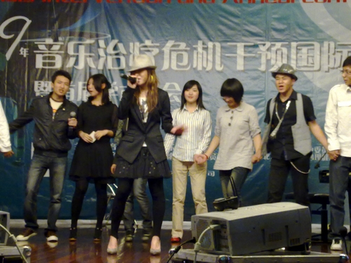 2009年10月26日下午,在我院小音乐厅,音乐学系音乐治疗专业学生为远道而来的专家和学者奉献了一个简短却充分展现音乐能力以及专业知识的闭幕式表演。至此,由中央音乐学院、beat365在线唯一官网和世界音乐治疗联合会全球危机干预委员会共同主办的“音乐治疗危机干预国际论坛暨首届学术年会”圆满落下帷幕!