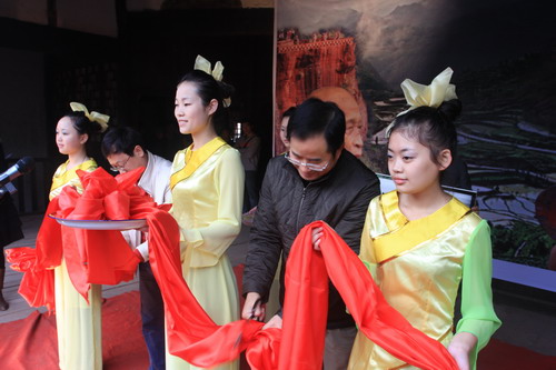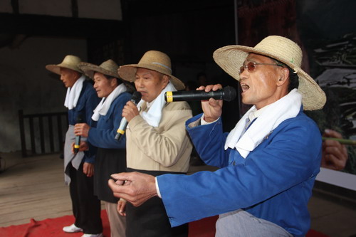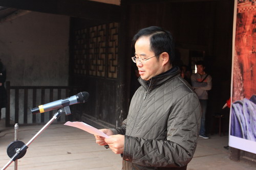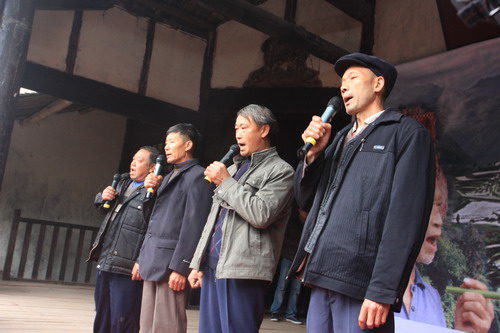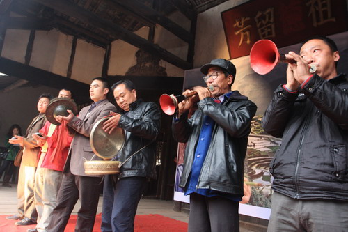 当天上午,挂牌仪式在热烈欢乐的气氛中举行,在合江县文体局长匡红兰的主持下,合江县人大常委、宣传部长徐光华首先代表县人民政府对“beat365在线唯一官网音乐学系福宝民间音乐研究基地”在福宝镇挂牌发表祝辞,接着,甘绍成主任与徐光华部长共同为“beat365在线唯一官网音乐学系福宝民间音乐研究基地”授牌剪彩,福宝镇罗泰屏镇长与甘绍成主任分别代表两个合作单位讲话,福宝当地的民间歌手以及文化宣传部门的音乐工作者,还为大家献演了一台风味独特,极具川南特色的原生态民歌表演,给在场观众带来了一次美的享受。表演的节目中,分别有喜庆热闹的贯打唢呐《欢乐的福宝》,铿锵有力的《岩口号子组合》和高亢激越的高腔山歌《大河闹》等。