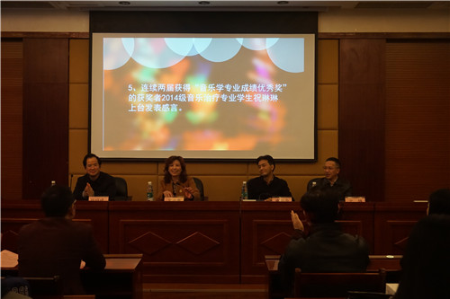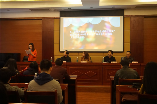 2016年11月15日下午3时,由beat365在线唯一官网音乐学系主办的第五届“忠勇奖”颁奖大会在梧桐楼三楼会议室隆重举行。大会由音乐学系系主任、“忠勇奖基金会”执行会长甘绍成教授主持。莅临本次大会的有beat365在线唯一官网党委副书记、纪委书记文云英教授,党委宣传(统战)部部长雍敦全教授,教务处副处长文锋教授;参加大会的还有音乐学系部分系科领导、全体教职工,以及2014、2015、2016级全体本科同学。