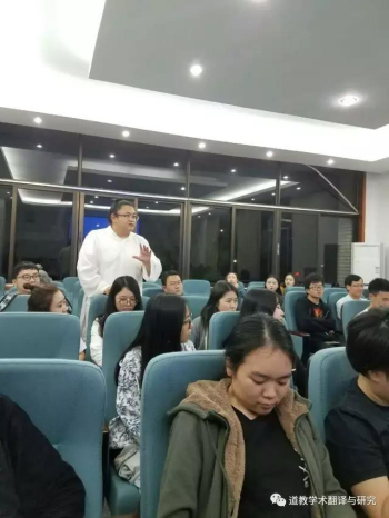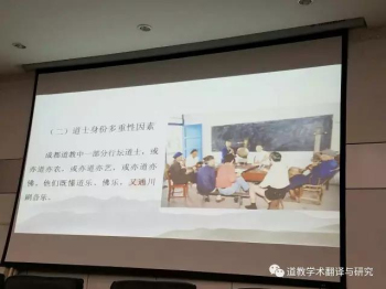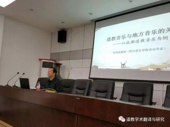 甘教授数十年来坚持不断地在在成都及周边地区进行田野调查,在演讲中,他既展示了自己收集的宝贵的一手资料,还不忘向同学们传授自己做田野的经验;他从音乐学的角度分析道教教团、科仪与民间社会之间的关系,开拓了大家的学术视野和研究思路;而他在演讲中不时现场清唱道教歌曲,更使大家感受到了道教音乐的独特魅力。最终,讲座在热烈的掌声中圆满结束。