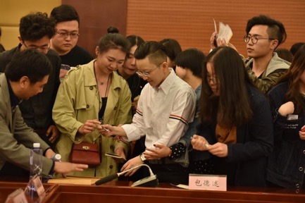 在本次座谈会中,王珮瑜老师充分运用自己的专业知识,从学术性的角度出发,详细的向在场的音乐学系师生表达了自己的观点、看法和亲身经历。通过对师生的问题进行细致的解答,使得在场师生无不佩服王珮瑜老师对于京剧的努力和执着,同时风趣幽默的谈吐更是让在场师生掌声不息。在座谈会的最后,音乐学系系主任、传媒学院院长包德述教授做总结性发言,再次表达了对于王珮瑜老师莅临的欢迎,同时对刚刚结束的“瑜乐京剧课”也再次给予了高度的评价。随后包德述教授同样感谢王珮瑜老师与师生的精彩讨论并表示再次热烈欢迎王珮瑜老师为川音师生们讲述更多的关于京剧的学术性内容,座谈会结束后王珮瑜老师与音乐学系师生合影留念,并为热情的学生们签名。