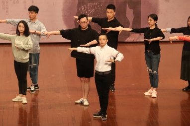 王珮瑜老师不仅教大家如何做一名演唱者,也教大家如何做好一名合格的听众。她详细的告诉大家如何及时、正确的为演唱者叫好并亲自示范,台下师生连连叫好。随后台上台下频频互动,王珮瑜老师邀请师生上台,亲自将京剧中的“手眼身法步”做现场教学。面对这场来之不易的“大师课”,台下观众积极踊跃参与,使现场气氛达到了一个高潮,台上的川音学子三招两式下来,倒也有模有样。王珮瑜老师也对川音学子的艺术素养做出了高度的赞扬,她表示这些学子是她走访的所有学校中最棒的。对于学生的疑问,她也一一做出了解答;可谓是全方位诠释了什么叫“有声必歌、无舞不动”的讲座主题。