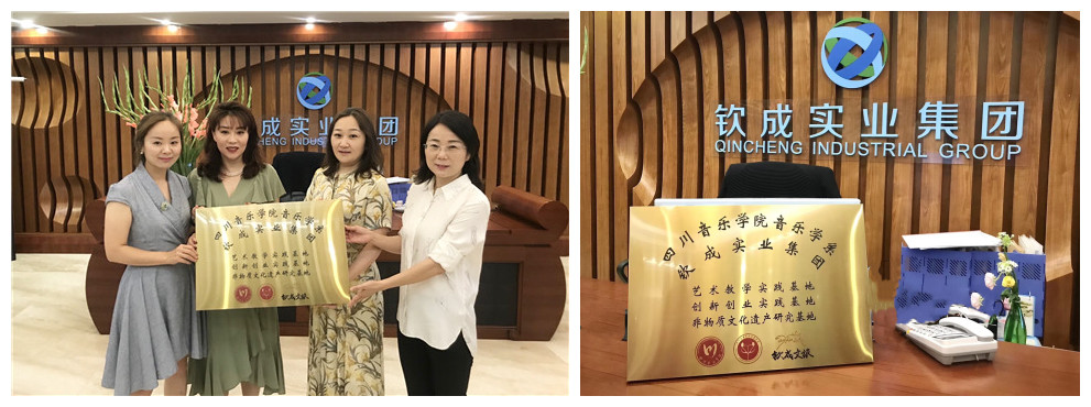 2020年7月3日上午10:00,beat365在线唯一官网音乐学系与钦成实业集团于公司所在地锦江区创世纪广场举行了校企共建“艺术教学实践基地、创新创业实践基地、非物质文化遗产研究基地”授牌仪式。音乐学系党总支书记何凌、系主任杨晓琴、副系主任格桑梅朵、办公室副主任李雪、钦成实业集团董事长梁春燕、钦成实业集团分管董办及集团企管中心王琳昕、钦成文旅集团副总分管公共艺术中心李诗瑶、钦成文旅集团副总分管行政人事蒲春蓉、成都文化旅游产业商会会长王开昕、成都北星艺文教育咨询有限公司总经理王羽翔及钦成文旅员工参加活动。
