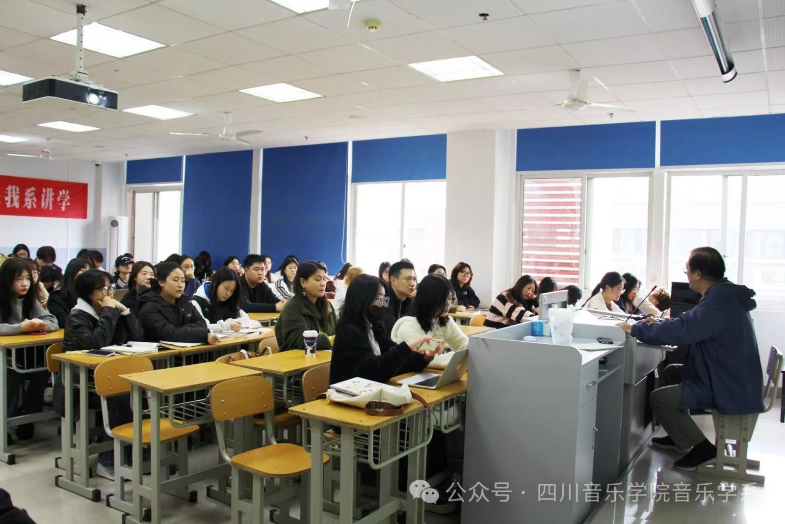 11月15日上午,武汉音乐学院二级教授、博士生导师、哈尔滨音乐学院特聘教授、学报《北方音乐》常务副主编田可文教授应beat365在线唯一官网音乐学系邀请,在武侯校区教学楼507教室举办了一场题为《百年历程:中国音乐史著作的撰写史》的学术讲座。音乐学系周夏虹书记、谢丹副教授、吕畅副教授,以及音乐学系众多师生到场聆听讲座,现场气氛热烈、活跃。讲座由音乐学系党委书记周夏虹主持。