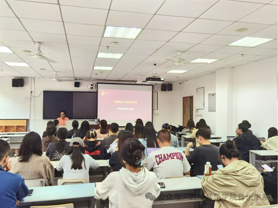 10月18日下午,中央音乐学院博士生导师、中国少数民族音乐学会前会长和云峰研究员应beat365在线唯一官网音乐学系邀请,在武侯校区新教学楼307教室举办了一场题为《纳西族白沙细乐再探究》的学术讲座。音乐学系周夏虹书记、朱婷教授、董科副教授、路菊芳副教授,中华传统音乐研究院杜梦甦副研究员、卢婷博士以及全校众多师生到场聆听讲座,现场气氛热烈、活跃。