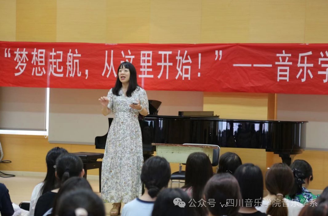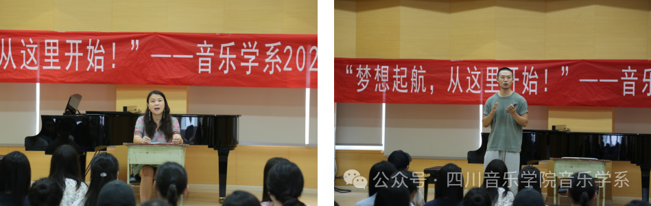 为了帮助新生尽快融入校园新环境,明确学习新目标,规划大学新生活,我系于9月6日上午10点召开2024级新生见面会。出席见面会的有音乐学系党委书记周夏虹、副系主任刘雯、办公室主任李雪、西方音乐史教研室主任何弦、音乐治疗教研室主任王佳、中国音乐史教研室教师谢丹、我系部分教师代表、系办公室全体教职员工以及全体2024级新生。首先,我系党委书记周夏虹、副系主任刘雯分别为新生致辞,对新生的加入表示热烈的祝贺和诚挚的欢迎,希望新同学们可以拥有积极向上的精神,互相配合,共同成长。在会议中,我系师生代表也陆续上台发言。各教研室主任和任课教师分别从不同的专业方向为同学们做了详细的讲解,并为同学们介绍了院系教研情况。