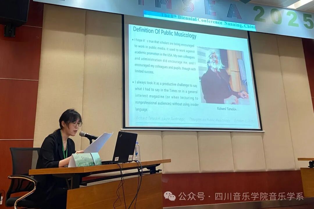 2025年9月19日至21日,我系西方音乐史教研室教师与部分学生代表赴广西艺术学院参加第八届国际音乐学会东亚分会(IMSEA)双年会。作为全球最具影响力的音乐学术组织之一,国际音乐学会东亚分会搭建了高层次的学术交流平台。本次会议汇聚了来自全球的170余位学者,包括36场专题发言和两场主旨讲座,范围涵盖历史音乐学、民族音乐学等多个学科,议题涉及音乐表演理论、音乐分析、音乐全球化、音乐跨文化融合、音乐中的声音与身份认同、音乐语言与认知等前沿领域,呈现了一场兼具国际视野与学术深度的学术盛宴。