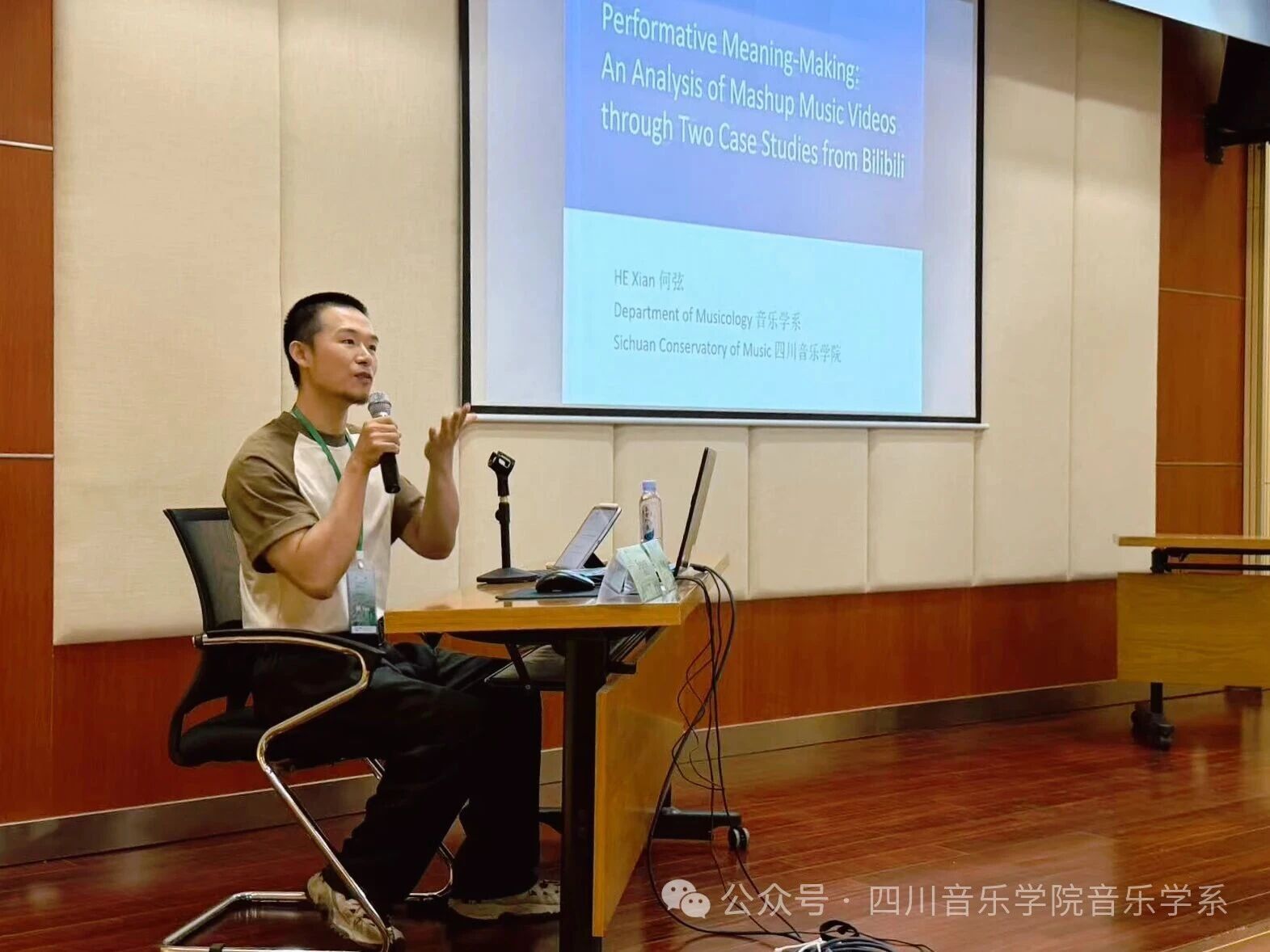 何弦老师通过研究哔哩哔哩创作者Vekoebeese制作的两个混曲视频,探讨中国民族声乐与西方流行音乐的杂交与互文现象,探究这些混曲作品如何通过多元媒介形态与参与主体间的协商互动生成表演性意义。专题发言期间,香港中文大学麦淑贤教授与苏州大学吴翊丞教授多次针对老师们的发言提出问题,现场讨论热烈、交流深入。