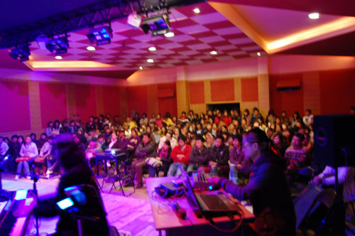 2008年12月10日晚,作曲系青年教师毛竹,美籍华人音乐家李带果与跨媒体艺术家李昆在川音绵阳艺术学院举办了一场名为“东方主义”的跨媒体自由即兴现场音乐会。 这三位以内心历险为首要母题的艺术家聚到了一起用声音探索“东方主义”的非常规表达。在视觉与听觉的基础上,传感器的加入延展了感知的领域,即兴音乐演奏和视觉艺术融合为一体,塑造出奇妙的声像景观。 该场音乐会策划人,作曲系的邹向平教授也在现场就即兴音乐的创作和传统音乐演奏模式之间的关系展开了即兴演讲,他旁征博引,介绍了国外当代音乐一些先锋概念和技术,并对国内国外的许多作品进行分析,多次搏得大家的掌声,受到在场众多师生的欢迎。