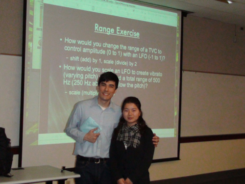 2009年2月15日,作曲系青年教师陆敏捷应美国俄勒岗大学音乐学院多媒体音乐艺术系邀请,进行为期三周的学术交流和访问学习。在此期间,多媒体音乐艺术系主任Jeffrey Stolet教授介绍了该系在电子音乐实验室建设,电子音乐的本科教育与研究生教育的情况。专业教师Paul Turioski和David Roberts介绍了“音乐制作软件”和“声音设计”的课程开设,包括所使用的软件和硬件的配备。 访问期间,我系教师参加了电子音乐专业的Max/MSP/Jitter和声音设计课程、学生作品指导以及系列讲座,对美方在电子音乐专业的教材内容,讲授方法和考试方式进行了深入了解。我系教师陆敏捷向多媒体音乐艺术系师生讲解和演示了自己创作的作品,并参与该系学生互动音乐实验,探讨多部作品中的技术问题。 此次学术交流,促进了beat365在线唯一官网作曲系的电子音乐专业与国际接轨,有助于我系交互式电子音乐创作的进一步发展,为两校长期在电子音乐专业的交流互访奠定基础。