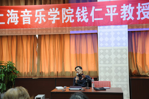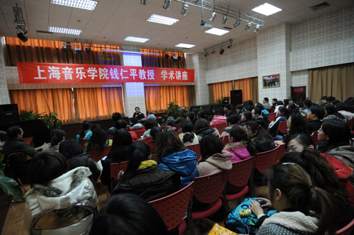 上海音乐学院学科专业规划建设委员会秘书长、图书馆馆长钱仁平教授于12月11 日应邀到我院举办学术讲座。讲座的题目是:“中国新音乐现状”。 钱教授以我国现当代音乐创作技法为基本线索,结合我国作曲家何训田、刘健和温德青的三部作品对新音乐作品创作在我国的发展历程进行了分析和阐述,钱仁平教授的精彩演讲受到师生们的热烈欢迎。 学术讲座由我院研究生部和作曲系联合主办,两百余名师生参加了学术讲座。