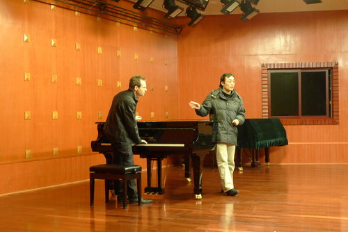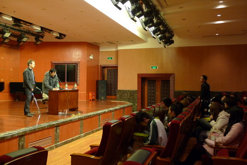 此外,他还给同学们播放了他自己创作的三首示范性作品:第一首是1999年创作的《Poren》(毛孔),三支中音单簧管融为一体,浑然天成。作品约7分钟,表现出类似大提琴或男高音的高亢音色,蕴含着莫扎特的一种思想;第二首是小提琴独奏曲《烦恼》,在将近7分钟里,它间接要告诉了听众,人是如何通过感官获得信息、转化信息,再传递到自己丰富的情感世界里;最后一首2009年创作的钢琴独奏曲《Me and Me》,是三首组曲里的第二首,围绕“我”而展开写作的。这首作品体现了作曲家的观点,即人并不仅是你我他,更重要地是如何在世上感受,表现和施展自己。三首曲子欣赏完毕后,Felix Baumann教授还兴致勃勃的和同学们就三首曲子的音乐融合性和结构处理等方面进行了深入交流,同学们都对此次讲座感触颇深,也对作曲的理念有了个更深层次的理解。