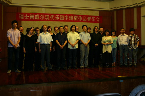 28日晚第一场音乐会的作品是瑞士国家艺术基金会赞助由诺威尔现代室内乐团委约中、瑞作曲家的新作品,中国作曲家分别是中央音乐学院副院长叶小纲教授的《羊卓雍错》,南京艺术学院邹建平教授的《聊斋故事II》以及我院作曲系主任宋名筑教授的《弦韵II》和上海音乐学院温德青教授的《琴声光亮—向孙文明致敬》。瑞士作曲家分别是曼努德的《崇拜》与迪特尔安曼的《自由交谈》。高质量的演出团队以及成熟的作品,每次的谢幕在场的观众无不报以热烈的掌声。每部作品都以精彩绝伦的写作技巧和默契的演出配合刺激着在场的当代音乐乐迷们。值得一提的是本场音乐会有三位民乐演奏家与该乐团合作演出,整场音乐会也被称为民族传统乐器与西方古典乐器的对话,中国演奏家们投入的演出、高超的技巧也使整场音乐会高超迭起。中国演奏家分别是章红艳、吉炜以及严洁敏。