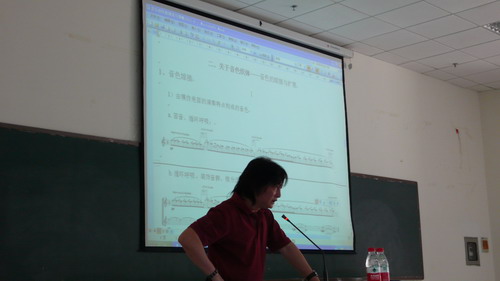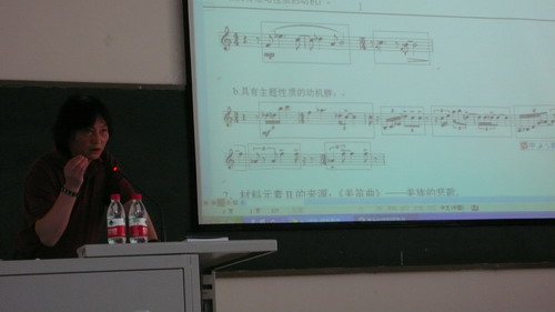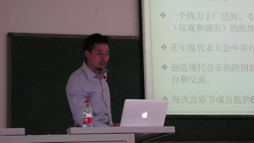 4月26日下午2:30,作曲系全体师生在教学楼阶梯教室参加了杨晓忠教授、邹向平教授举办的讲座。首先,由系主任宋名筑教授介绍了此次讲座的背景以及作曲系一行七人应邀赴克罗地亚参加国际现代音乐节的大致情况。 讲座分为两个部分,前半时段由杨晓忠教授以“音乐创作的视觉与策略”为题,讲解入选2011国际现代音乐节展演作品《移动的背景》的创作理念、演出背景。结合作品现场演奏的视频播放、谱例以及文字分析,杨晓忠教授介绍了该作品的创作材料元素、音色的织体以及创作技巧,给全系师生上了一节生动的作曲公开课。 在讲座的下半时段,邹向平教授介绍了ISCM国际现代音乐协会、ISCM-IAMIC-YCA青年作曲比赛的概况,结合自己作品参加各类活动、赛事的经历,鼓励广大师生积极参与国际学术活动与赛事。 此次讲座是全系师生集体参与的一项颇有意义的学术活动,系主任宋名筑教授表示,以后作曲系还将继续开展这类活动,促进信息交流与学术沟通。