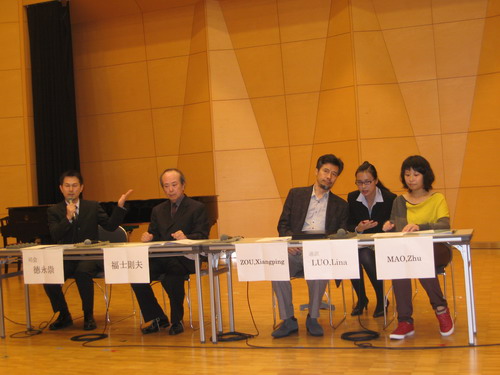 10月22日,在广岛文化交流中心举行了由三位受邀作曲家参加的讨论会,其主题为“中国与日本的当代音乐之现状与展望”。日本作曲家福士则夫,中国作曲家邹向平,毛竹分别表达了自己的观点,并交换意见,与现场观众进行交流。讨论会之后,举行了中日现代作品音乐会。音乐会上演了来自日本广岛,京都,东京,中国四川,上海的作品共11首。其中绝大部分作品为世界首演。