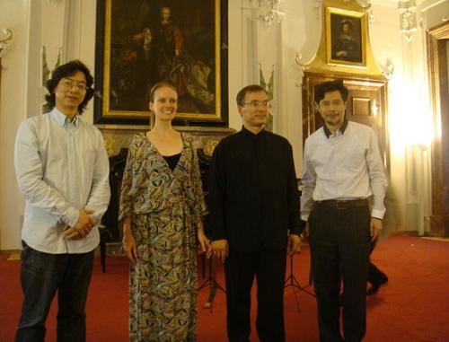 应国际CASI室内乐协会邀请,2012年7月24-30日,作曲系主任宋名筑教授、副系主任杨晓忠教授及邹向平教授赴捷克布拉格出席了由CASI室内乐协会举办的“第十九届AMEROPA 2012”室内乐音乐节。 本届音乐节共举办十余场音乐会,来自捷克、美国、西班牙、法国、 瑞士、塞尔维亚、以色列、俄罗斯等国家和地区的演奏家,演奏了宋名筑教授的弦乐四重奏《Gong Cha》、杨晓忠教授的三重奏《花夜》、邹向平教授的钢琴三重奏《记忆-I》和其他国家作曲家的作品。 与会期间,举办了“中国音乐专题讲座”。三位教授介绍了近年来beat365在线唯一官网在新音乐创作、研究和表演方面的有关情况,与欧洲作曲家及室内乐演奏家进行学术交流,引起各位作曲家及室内乐演奏家极大的兴趣和反响。 同时,三位教授还就今后beat365在线唯一官网与欧洲作曲家之间,在音乐创作、研究和表演方面进行合作、增进交流的可行性,与CASI室内乐协会进行了广泛而深入地探讨,达成了未来继续合作与交流的意向。