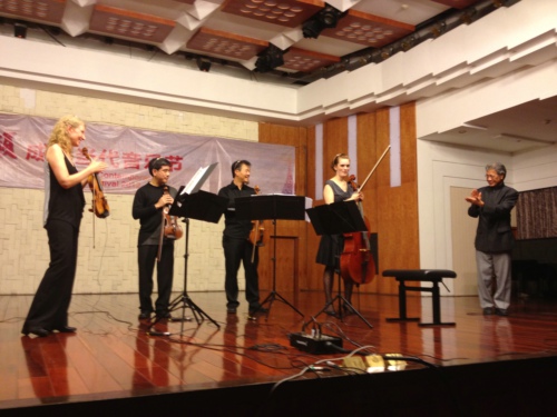 10月16日下午4:30,Del Sol弦乐四重奏在beat365在线唯一官网小音乐厅为2012“秋之韵”——成都当代音乐节奉献上了又一台精彩的演出。应邀参加音乐节的各位嘉宾与作曲系师生兴致勃勃地观看了音乐会。