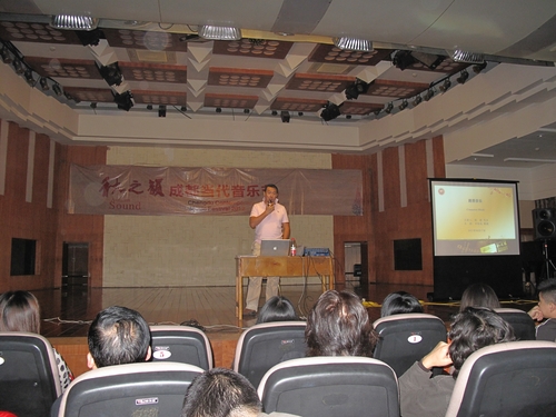 2012年10月17日上午,“秋之韵”成都当代音乐节系列学术讲座之一:特约嘉宾杨毅先生跨界音乐“Crossover music”讲座在我院小音乐厅成功举行。该讲座由我院音乐学系主任甘绍成教授主持,作曲系、音乐学系及其他院系对跨界音乐感兴趣的老师和同学参加了此次讲座,全场座无虚席。