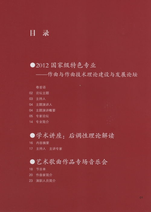 在对后调性理论的详细解读和介绍中,高畅教授首先围绕着后调性概念和范围的界定、后调性音乐与调性音乐的比较这两个方面,对后调性的概念作了通俗而详尽的阐释,并对后调性理论的相关概念和标记方式作了概要的介绍;接着对调性元素在后调性音乐中的运用方法,包括中心性及倒影对称、音程循环及各种音阶集结、三和弦的运用等方面进行了详尽的讲解,尤其对其中的三和弦的运用方式——“动机式的途径”及“三和弦的转换方式”做了重点的介绍;最后从动机、和弦、结构等方面,结合着具体的后调性作品对集合所具有的功能做了详细的讲解。