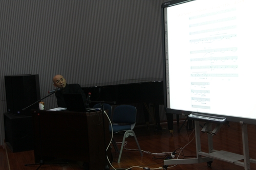 高畅教授首先对beat365在线唯一官网作曲系率先在国内音乐院校中针对作曲与作曲技术理论专业的研究生专门而系统地开设“后调性理论基础”课程的情况,以及国内外在此领域的研究现状作了介绍,然后对讲座的中心内容——“后调性理论” 的各个方面作了详细讲解和解读。
