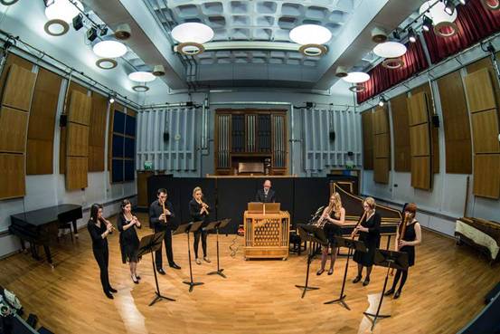 2015年3月16至27日,一年一度享有盛名的“Frontiers Festival”国际音乐节在英国伯明翰市隆重举行。3月12日,在为该音乐节之开场系列音乐会中的竖笛作品专场音乐会“Recorder Future”上,在伯明翰音乐学院攻读博士学位的我系青年教师方芳为伯明翰音乐学院竖笛室内乐团委约所创作的竖笛七重奏《Dusk(薄暮)》在伯明翰音乐学院Recital Hall音乐厅成功首演。作曲家发现竖笛(又称直笛或木笛)这件源于欧洲巴洛克时期的乐器在音区、音色及演奏技巧方面与中国传统的多种民族吹奏乐器有着诸多共通性。因此,在《Dusk(薄暮)》的创作中,作曲家巧妙地运用竖笛模仿竹笛、箫、埙、巴乌、葫芦丝等多种中国民族乐器,由此而创造的不同鸟儿般的合唱描绘了一副黄昏时分各种自然界声音相互萦绕,充满幻想色彩的画面……。