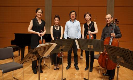 最后一部作品是由敖翔老师创作于2015年的《古韵》。中国古代的文人在演奏乐器的时候,他们会依心境的变化和环境的氛围而选择每个音的具体长短、强弱,揉弦的快慢及持续时间, 这种对每一个单音都给予细腻而精致的手法来加以控制的音乐效果,往往被称之为“韵”,这种韵既承载着演奏者长期积淀的文化底蕴与功力深厚的音乐修养,也蕴含着某种神秘的力量与高超的智慧。 将西洋室内乐演奏技术与中国古代音乐思想表达方式相结合来现“韵”的思想是一个极其美妙的过程。